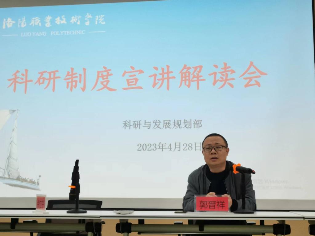 科研与发展规划部部长郭晋祥,副部长刘潇阳、辛利军分别从科研项目及经费管理办法、科研经费资助与配套办法、科研平台建设与管理办法、科研创新团队管理办法、规范教师科研活动工作等方面系统解读了学校科研管理政策;